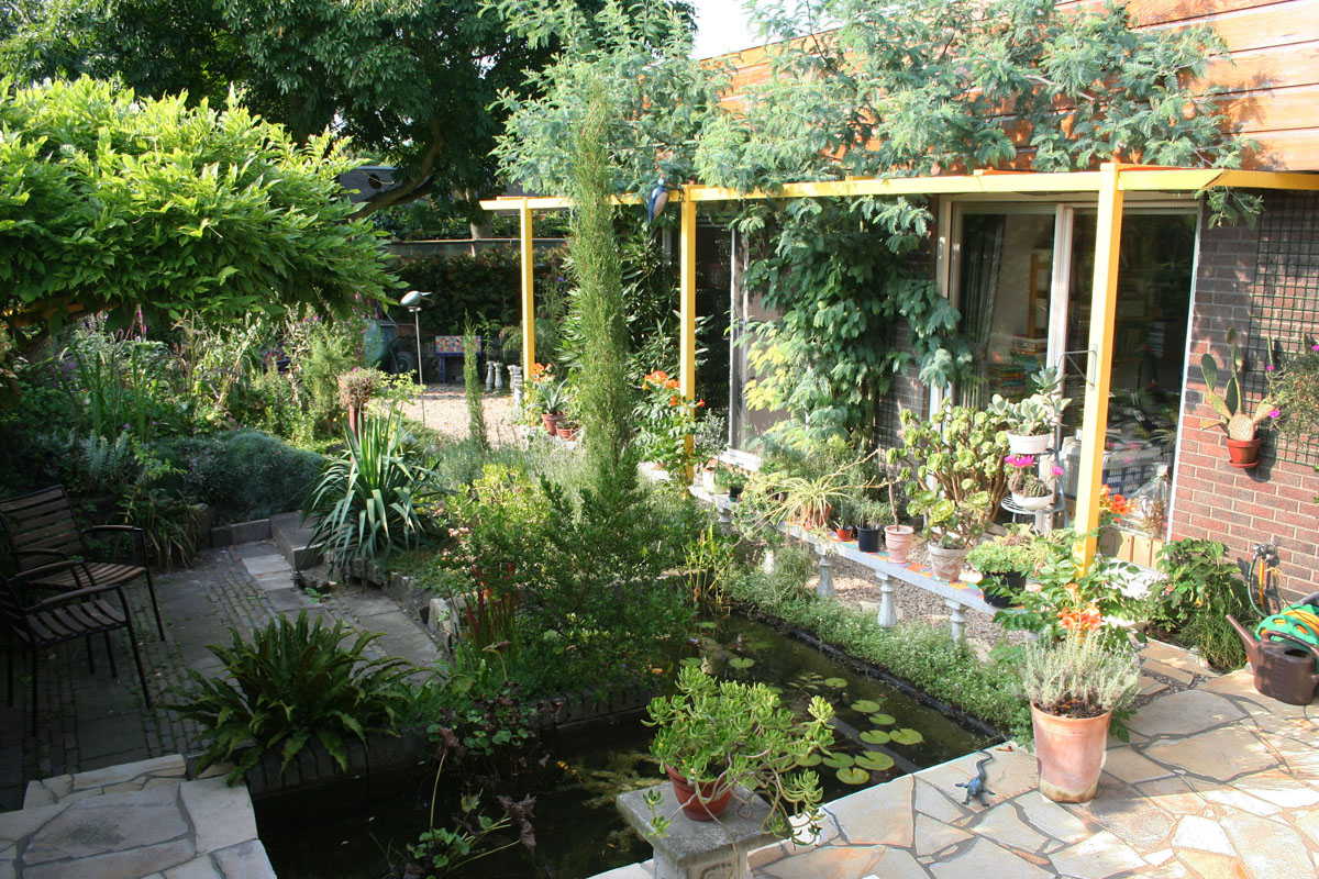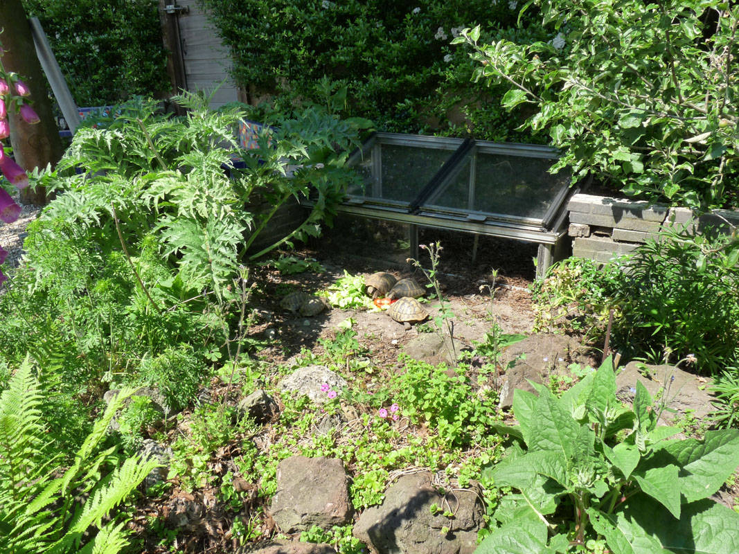 Sinds 1996 lopen of liepen bij mij, in een Amsterdamse buitenwijk, smaragdhagedissen, parelhagedissen, ruïnehagedissen, groene padden, Italiaanse kamsalamanders, koreaanse vuurbuikpadjes en Griekse landschildpadden los door de tuin. De tuin is een prima verblijfplaats voor deze dieren gedurende het hele jaar. Het blijft gewoon mogelijk om in de tuin te werken en te ontspannen. De belangrijkste reden om op deze manier reptielen en amfibieen te houden is de terugkeer van het natuurlijke gedrag van de dieren. In het binnenterrarium werden mijn hagedissen tam en 'vadsig', maar vanaf het moment dat ik ze los liet in de tuin waren ze weer alert en bliksemsnel. Ook de kleur van de dieren wordt veel intensiever door direct zonlicht en een afwisselend menu. Met name smaragdhagedissen wennen aan mensen en zijn erg nieuwsgierig. Elke nieuwe tuinbank of bloempot, maar ook uw schoenen, worden regelmatig beklommen.