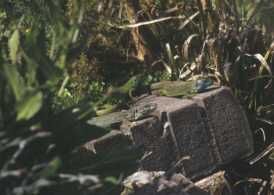 Dit verschilt natuurlijk per soort en hangt ook af van de grootte van de tuin. De meeste ervaring heb ik met smaragdhagedissen, ruinehagedissen (P. sicula) en enkele jaren met parelhagedissen (Timon lepidus). Sinds 1 jaar lopen er ook 7 Griekse landschildpadden (testudo Hermanni) door een deel van de tuin. Met name voor hagedissen is niet alleen de oppervlakte van de tuin, maar ook de inrichting en zonligging belangrijk. Voor smaragdhagedissen in de natuur is een gemiddelde homerange van 77m tot 125m vastgesteld. Het totaal gebruikte areaal kan wel tien tot twintig keer zo groot zijn! Dit bleek uit telemetrisch onderzoek bij smaragdhagedissen in Duitsland in het Rijndal. (Radiotelemetrische Untersuchungen zu Raumbedarf und Habitatnutzung der Lacerta bilineata. P. Sound, Dr. M. Veith, Instituut fur Zoologie, Universtat Mainz, Saarstrase 21, Marz 2000). Uit dit onderzoek blijkt ook dat de dieren een grote voorkeur hebben voor lage vegetatie (minder voor hoge vegetatie, open vlakte of rotsen).